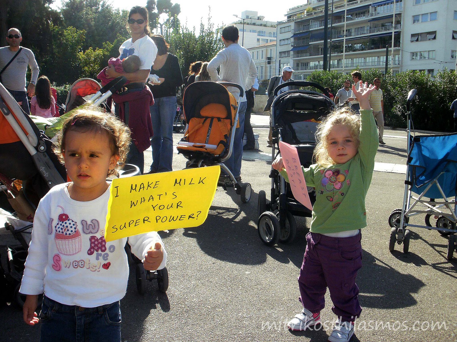 Όπως μας δήλωσαν η Κατερίνα Ζαρρη και η Στέλλα Τζα (μελη του φόρουμ), μπορεί να μην υπήρχε άρτια οργάνωση (απλές μαμάδες είναι άλλωστε, δεν υπήρχε κάποιος επίσημος φορέας από πίσω…), όμως έδωσαν το παρόν, πέρασαν τέλεια, με τα μωρά να θηλάζουν και τα μεγαλύτερα να παίζουν στην παιδική χαρά και το σημαντικότερο κατάφεραν να περάσουν το μήνυμά τους υπέρ του μητρικού θηλασμού!
