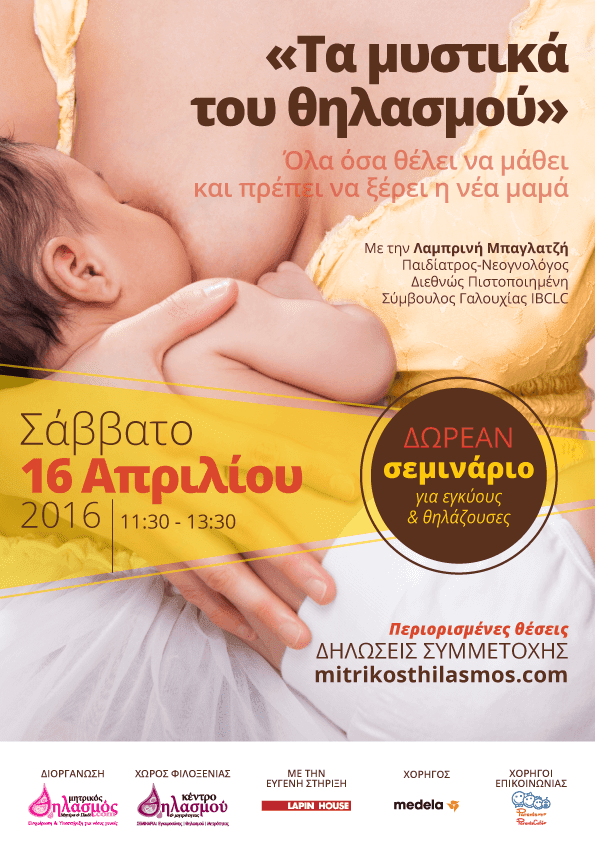 Μείνετε σε επαφή! Δείτε το πρόγραμμα όλων των σεμιναρίων ΕΔΩ. Ακολουθήστε το Κέντρο Θηλασμού & Μητρότητας του mitrikosthilasmos.com και στο facebook.