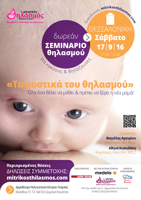 Το mitrikosthilasmos.com, στοχεύοντας στην ενημέρωση και καλύτερη προετοιμασία και εκπαίδευση των γυναικών στο θηλασμό, στο πλαίσιο της κοινωνικής του προσφοράς, διοργανώνει στη Θεσσαλονίκη ένα ακόμη ΔΩΡΕΑΝ σεμινάριο θηλασμού με θέμα: “Τα μυστικά του θηλασμού. Όλα όσα θέλει να μάθει και πρέπει να ξέρει η νέα μαμά” και προσκαλεί εγκύους και θηλάζουσες μητέρες!